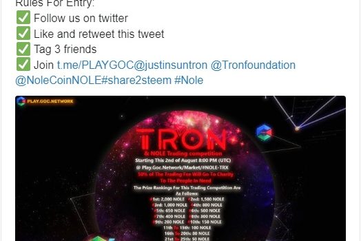END DATE: 07/08/2019 TOTAL PRICE : 3000 TRX Tron worth of $66 USDT Twitter User ID: 1061795219232907264