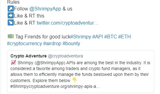 🔥 1000000 $Kubo #KUBO #CRYPTO #GIVEAWAY 🏅 4 lucky participants will split the rewards in 7 days Rules↗️Follow @ShrimpyApp& us➡️Like & RT this↘️Like & RT https://twitter.com/cryptoadventura/status/1163825044172288000?s=09 💵 Tag Firends for good luck #Shrimpy #API #BTC #ETH #cryptocurrency #airdrop #bounty