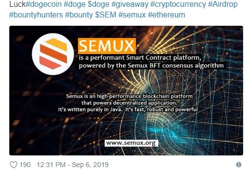 To win 5000 Doge coinsyou MUST: ✅Like & Retweet✅Follow @all_cryptand @semuxproject ✅Tag 3 Friends 1 random winner Giveaway end 13.09.2019 Good Luck #dogecoin #doge $doge #giveaway #cryptocurrency #Airdrop #bountyhunters #bounty $SEM #semux #ethereum